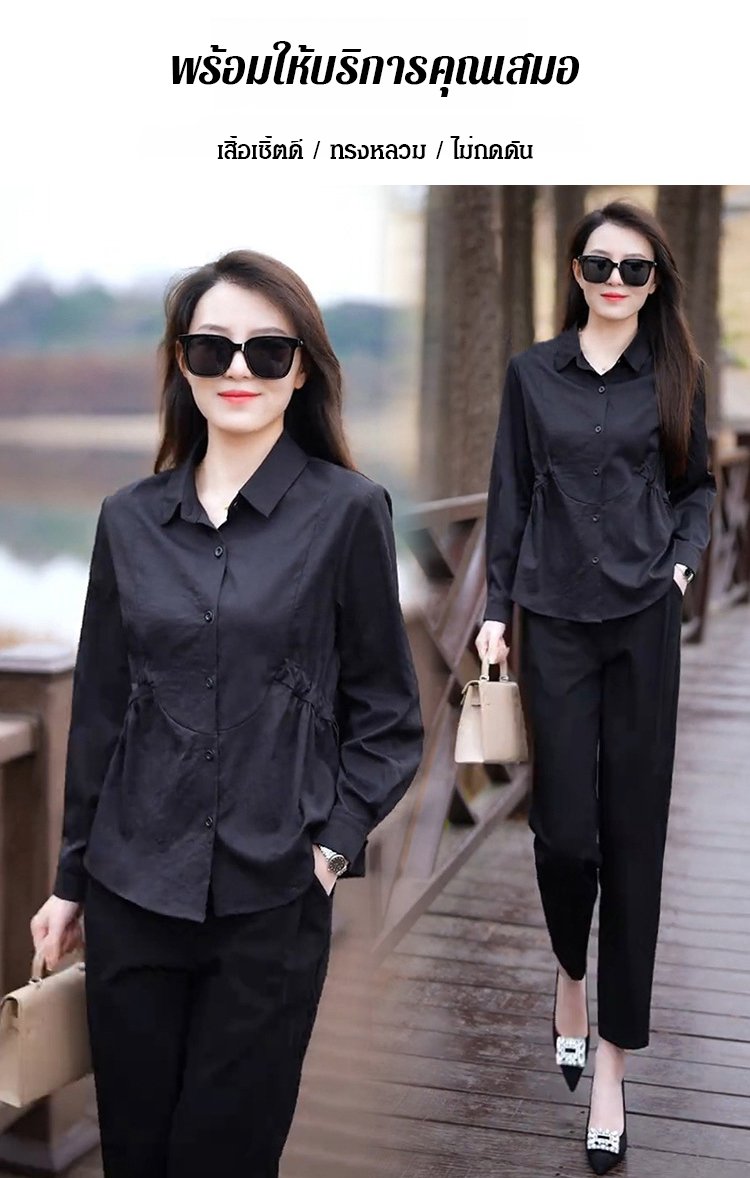 เสื้อเชิ้ตดีไซน์เรียบง่ายพร้อมเชือกรูด